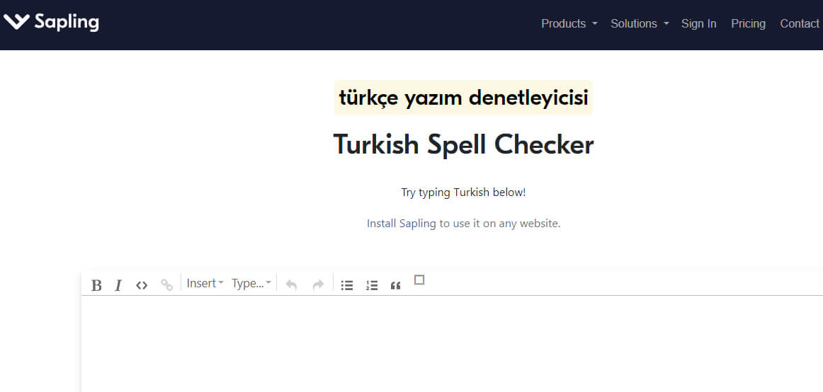 موقع Sapling هو مدقق إملائي ونحوي مدعوم بالذكاء الاصطناعي من Sapling، وتم تطويره من قبل مطورين من جامعة كاليفورنيا في بيركلي، وستانفورد، وجوجل. تدعم هذه الأداة المميزة تدقيق وتصحيح أخطاء اللغة التركية بالإضافة إلى 12 لغات أخرى، منها اللغة الفرنسية واللغة الإنجليزية واللغة الإسبانية واللغة الألمانية.